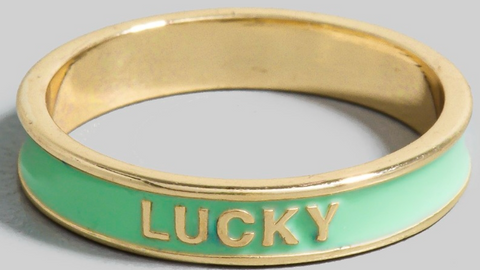 This ring features a fashionable enamel lucky band style. Ring size 6.5. 60% brass 40% enamel
