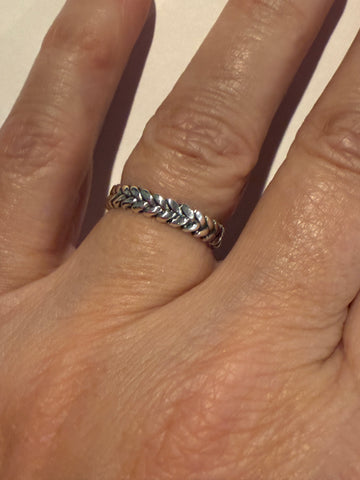 Twisted sterling silver hoop earrings.
