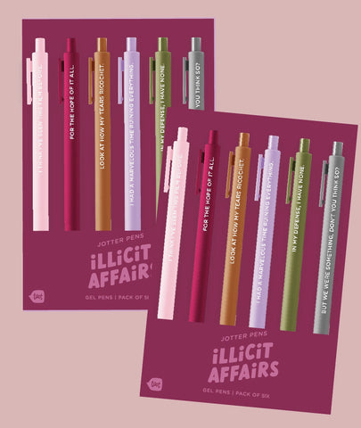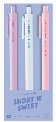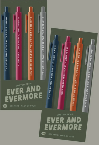 3, 4 and 6 packs. Funny saying pen sets.