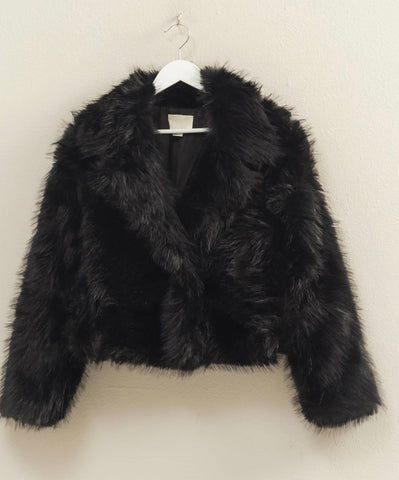 BK-Faux fur, oversized collar, straight fit, sits just below waist.
