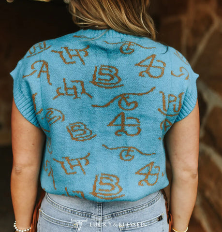 Round neck, brand prints, knit sweater vest.