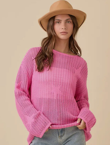 PK- crochet knit, light weight, loose fit, star detail sweater. 100% acrylic