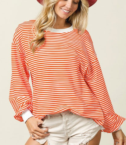 SOR- French Terry, stripes, crew neck, banded cuffs, oversized fit pullover.(Shop these at The Market at Northpark Mall in OKC)