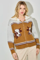 Cardigan-Zip front, Peter Pan collar. 100% acrylic