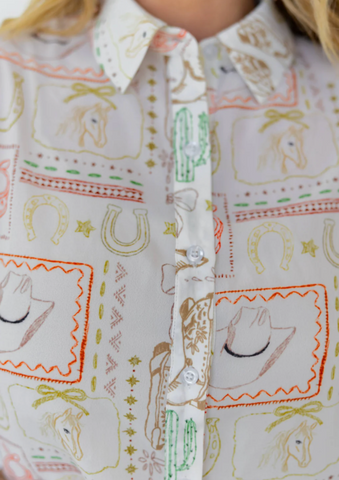 Button-up, collared, long puffed sleeves, tailored cuffs, relaxed fit, sheer top.